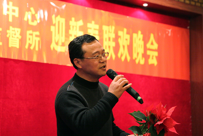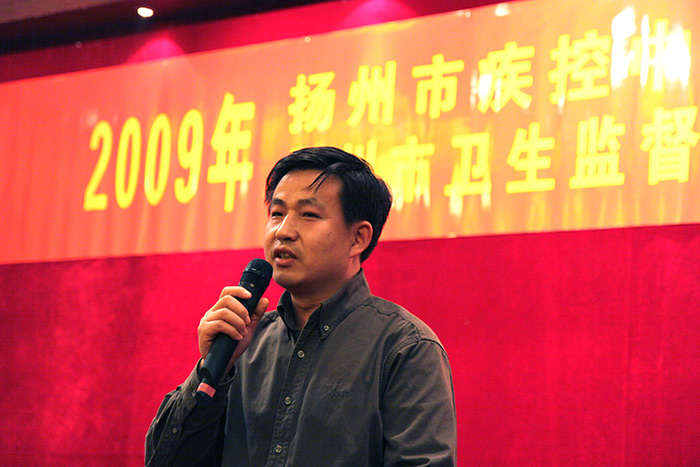 卫生局副局长杨军新春致辞,感谢市疾控中心和市卫生监督所全体职工的辛勤工作