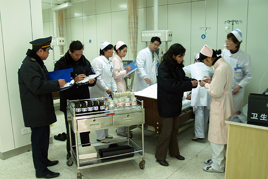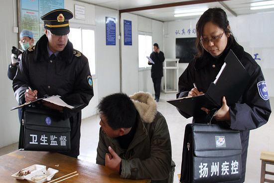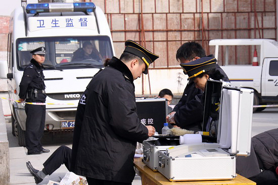 上午9:00,市疾控中心7名负责流行病学调查、采样检验的应急队员组成两个小分队,分别集结于京华西岗、邗上岗。10:00,随着总指挥一声令下,演习正式开始,市疾控中心应急队员迅速进入实战状态。在京华城华新工地现场,队员们迅速开始流行病学调查,对所有病员逐一了解就餐情况和发病状况,对工地食堂所有食品和原料采样,对能够现场快速监测的,立即监测,不能快速监测的,迅速送中心实验室。