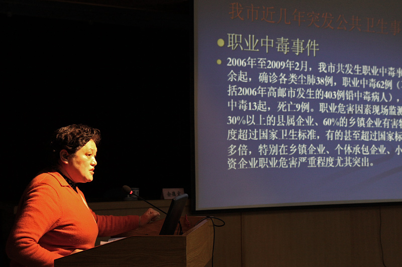 会上,市疾控中心总结回顾了2008年市区职业卫生工作情况,布置了2009年职业卫生工作任务;市卫生监督所通报了2008年三部门职业安全卫生联合检查情况,同时对今年职业卫生督查工作及4月下旬《职业病防治法》宣传周活动提出了要求;市卫生局唐扬明处长在会上作了重要讲话,并宣读了表彰决定,对江苏扬农化工股份有限公司等15个职业卫生工作先进集体和芮青海等25名先进个人进行了表彰;孙兰芳副主任通过多媒体图文并茂的形式通报了我市近三年职业中毒事件及尘肺、职业性皮肤病等职业病的发生情况,使与会者更加深刻的认识到职业卫生工作的重要性。