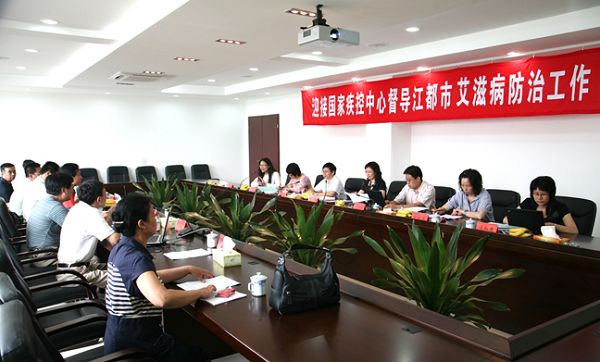 6月17日,督导组来到江都市。督导组仔细查阅艾滋病防治工作资料,现场查看艾滋病筛查实验室。督导组对江都在艾滋病防治方面所做的工作表示肯定,认为政府重视、经费投入到位。督导组同时建议在今后的艾防工作中,加强部门间协调配合,充实疾控中心艾防专职人员,加大对性病病人和吸毒人员的监测、筛查力度。