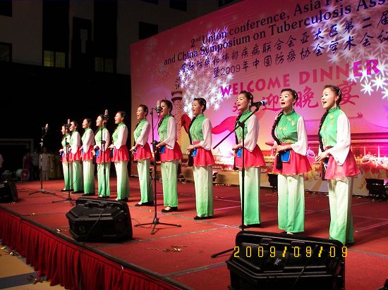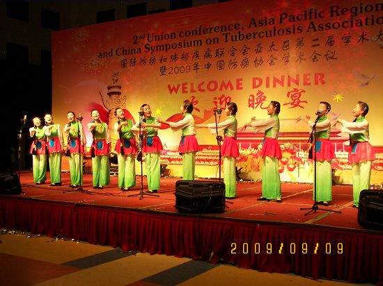 9月9日,扬州市疾控中心演出队参加了中国防痨协会在北京举办的“国际防痨和肺部疾病联合会亚太地区第二届学术大会暨2009年中国防痨协会学术会议”的调演。 市疾控中心参演的女声表演唱扬州民歌《拔根芦柴花》,富有浓郁的地方特色,生动地展现了扬州新农村姑娘的魅力形象。