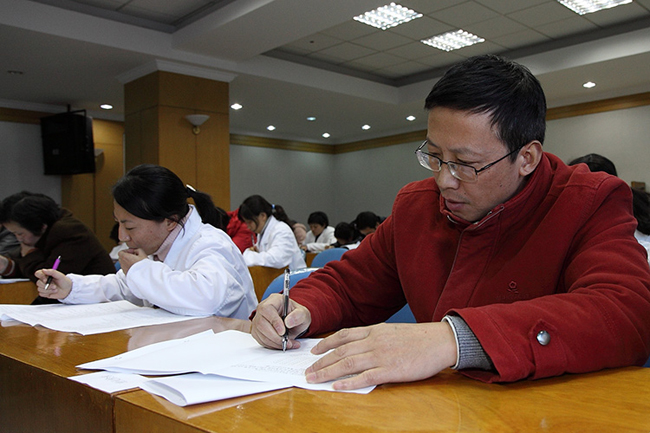 11月30日,扬州市疾控中心下半年“三基”考试如期开考,中心122余名职工参加了考试。 扬州市疾控中心从2008年开始每半年举行一次全员“三基”考试,旨在进一步加强全体干部职工的专业技术训练和能力素质建设,提高疾病预防控制水平和质量。此次考试科目包括传染病防治、临床检验、内科、护理、药学、卫生管理等14个专业,中心领导高度重视,考前召开考试动员说明会,并亲赴考场察看。考场秩序井然,参考人员严肃认真。