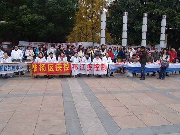 12月1日是第22个世界艾滋病日,活动主题为“遏制艾滋,履行承诺”副标题是“权益,责任,落实”。扬州市卫生局、红十字会、团市委、市计生协、市总工会、市及各县(市、区)疾控中心等单位联合在广场、高等院校、厂区等地开展一系列宣传活动。