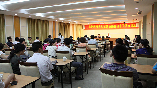7月2日市疾控中心对广陵区、维扬区、开发区和邗江区疾控中心免疫规划科科长、系统负责人员及四个区所属预防接种单位的儿童预防接种信息管理系统操作人员再次进行了强化培训。