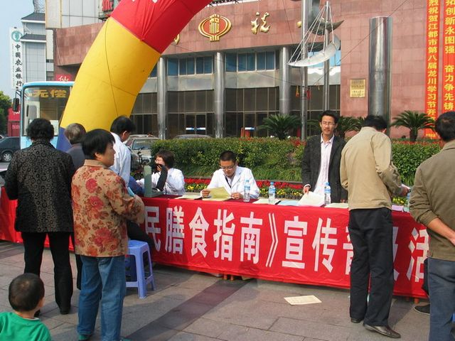 10月9日,江都市疾控中心在鑫都广场举办了以“中国居民膳食指南”、“均衡营养、合理膳食”为主题的宣传活动,江都市卫生局副局长李健到场并作现场指导。