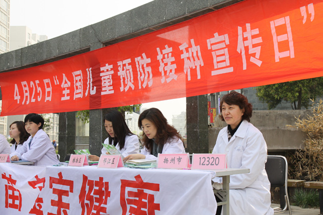 4月23日上午,市卫生局人事处、疾控处组织市、区疾控中心等医疗卫生单位,在扬州市连运社区开展了“12320热线电话现场咨询”和“接种疫苗宝宝健康”为主题的12320暨预防接种大型广场宣传活动。市区疾控机构及医疗卫生单位的临床专家、预防接种、12320咨询员等40余人在活动现场开展宣传并接受广大市民群众的咨询。现场发放各类宣传资料2000多份,为数百名群众现场解答各种卫生健康和儿童计划免疫方面的问题。市卫生局领导视察了宣传活动现场。
