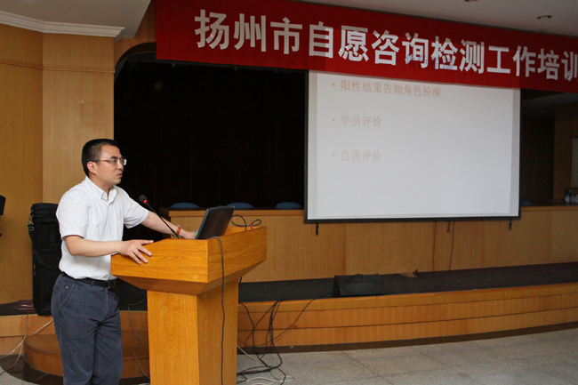 这次培训班邀请了江苏省CDC性艾所管文辉副所长、丁萍主任医师来培训班授课,两位专家讲解了艾滋病VCT工作重要性、设置规范、服务流程、表格填写及相关国家政策法规,并列举典型案例介绍咨询方法和技巧,还现场组织学员作角色扮演活动,从而增进了学员对理论知识的理解和掌握。培训结束,所有学员均参加了问卷测试。