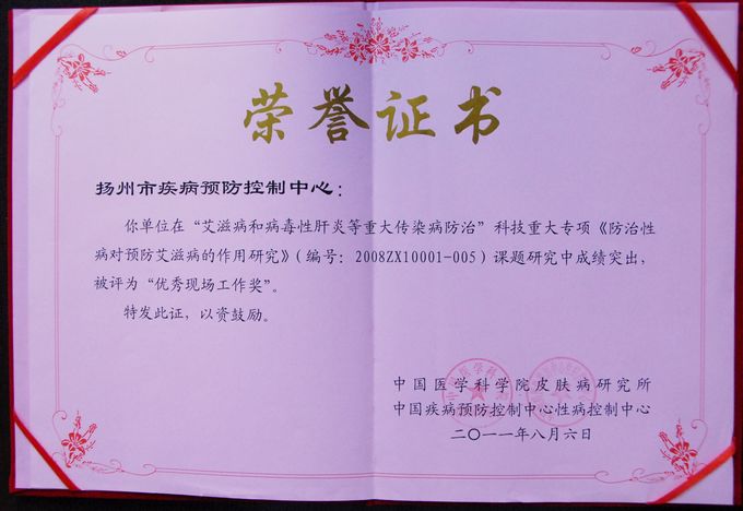 从8月5-7日在南京召开的国家科技重大专项“防治性病对预防艾滋病的作用研究”课题总结会上获悉:扬州市疾病预防控制中心获得“优秀现场工作奖”。自2009年国家科技重大专项课题开展以来,扬州市紧紧围绕项目要求,从以下五个方面,全面落实措施,确保了项目的良好运行。
