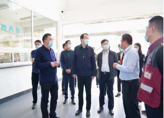 4月9号上午,生态科技新城管委会主任李桂山,副主任唐朝文,社事局副局长丁文才等一行调研分中心疫情防控工作。