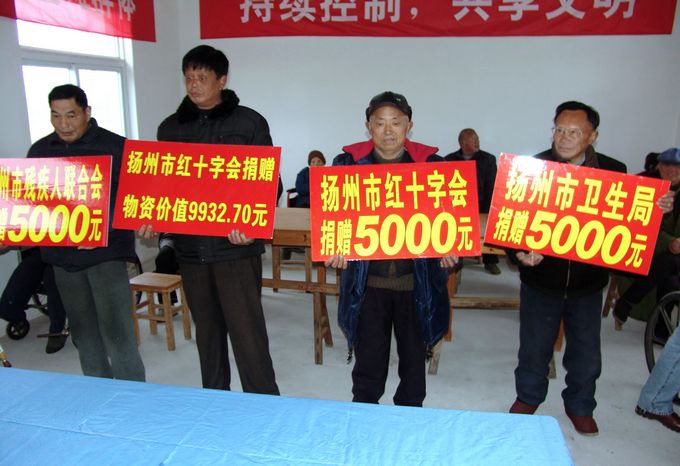 元月29日是2012年“世界防治麻风病日”,2012年1月18日,扬州市政府副市长董玉海率领市卫生局、红十字会、残联、疾控中心等相关部门领导,来到邗江区皮肤病防治院麻风康复村,向麻风病休养员、麻风病防治工作者表示节日祝贺和亲切慰问,并给他们送去慰问金及食品、衣物等生活必需品,让麻风病休养员充分感受到政府和社会的关爱。