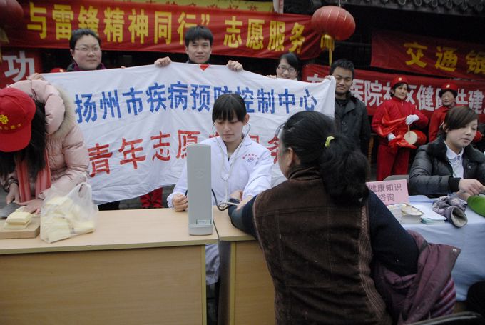 3492 3月3日上午,市疾控中心青年志愿者服务队参加了由东关街道组织的“学雷锋日”社区服务活动,现场为40余人免费测量血压并发放各种纪念品和保健、防病宣传资料,受到了居民的欢迎。