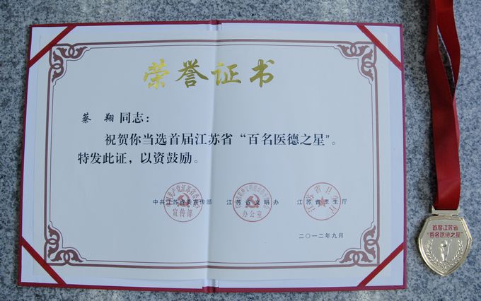 9月20日,省委宣传部、省文明办、省卫生厅在南京隆重举行了“美德之光”——江苏省“师德模范”、“医德之星”、“诚信之星”表彰大会。扬州市疾控中心职防科蔡翔科长获得首届江苏省“百名医德之星”荣誉称号。