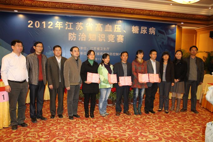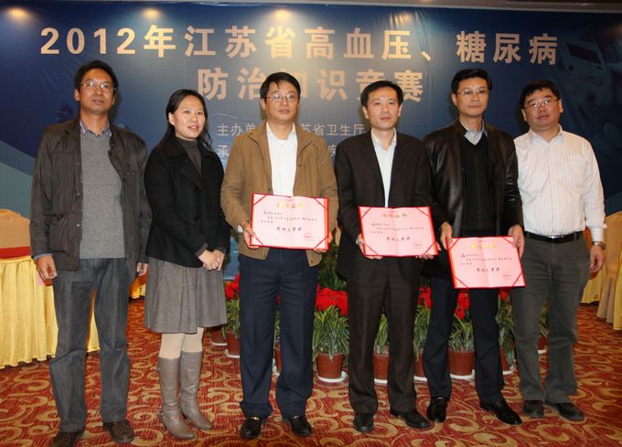 2847 2012年11月13—14日,江苏省卫生厅、江苏省疾病预防控制中心在南京举行了“2012年江苏省高血压、糖尿病知识竞赛”,扬州市代表队获得省团体三等奖,我市两名选手获得个人三等奖。