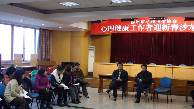 元月二十日上午,扬州市心理卫生协会在中心七楼会议室举办心理健康工作者迎新春沙龙。来自市区部分中小学校心理健康辅导室和社会各届的心理咨询师、心理学爱好者共44人欢聚一堂。中心心理咨询师全体参与活动,并由韶珊同志作了案例分享。活动精心安排了“破冰游戏”、“心灵花园小憩”和“成长串串烧”等环节,通过催眠放松、意象对话、读书感悟等具体方式,达到参与者体验不同咨询技术,促进共同成长的目的。最后,还进行了团体游戏体验《坐长城》,在欢乐温馨的气氛中,大家对新的一年许下美好愿望。
