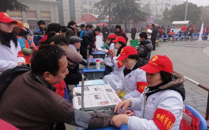 2637 2月23日上午,由扬州市委宣传部、市文明办、市级机关工委、市卫生局等多家单位联合组织的《学习雷锋好榜样“万名志愿者集中行动”》在文昌广场举行。市委宣传部领导出席了启动仪式并作了重要讲话。活动现场表彰了2012年度省、市、区优秀志愿者及优秀自愿服务组织。志愿者集体进行宣誓,启动仪式结束后,所有机关志愿者开展上路段、进社区、站岗点、守道口等志愿活动。按照市卫生局要求,本中心心理咨询志愿者参加了文昌广场心理援助服务活动。同期,中心青年志愿者组织了走进广陵区曲江街道顾庄社区大型义诊服务活动,为广大社区居民提供学雷锋便民血型、血压个人健康检查等