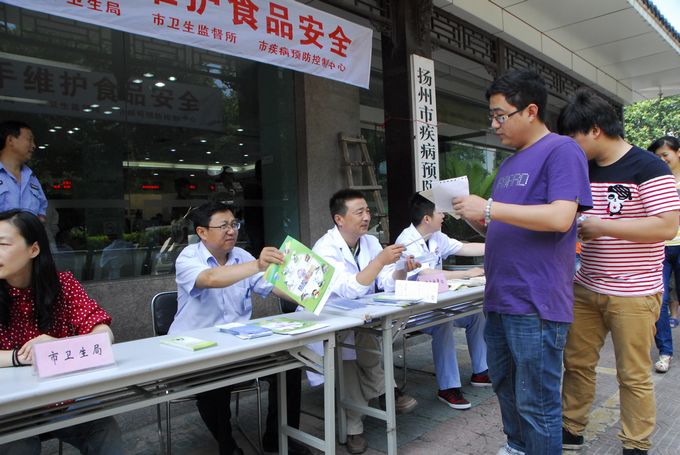 活动现场通过设立咨询台、悬挂标语、摆放展板、发放资料等多种形式向群众宣传食品安全法律法规与食品安全常识。来自市卫生局、市卫生监督所、市疾病中心的专家与公众面对面的进行食品安全相关知识的宣传交流,重点解答食品安全领域有关食物中毒处理与食品标签阅读的常见问题,宣传食品安全的科学理念。活动共发放各类食品安全宣传材料300余份,接受群众咨询100余人次,取得了良好的成效,受到了群众的热烈欢迎。