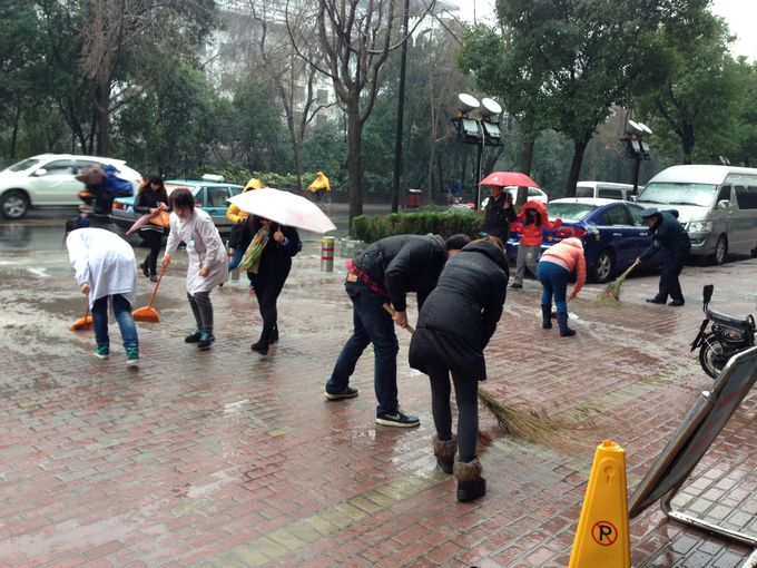 2月7日上午9时,市疾控中心团委组织了团员和部分青年志愿者共8人,在单位门口第一时间开展了除冰扫雪行动。虽然天气很冷,低至零下,还下着雨雪,不少团员和志愿者的脸和手都冻得通红,但是这些都抵挡不住大家扫雪的热情。大家挥舞着笤帚,相互协作,热情高涨,一点点清扫,一米米推进,你推我扫,一点点地将积雪和冰层集中堆放。经过半个多小时的努力,门口的积雪被清扫干净。
