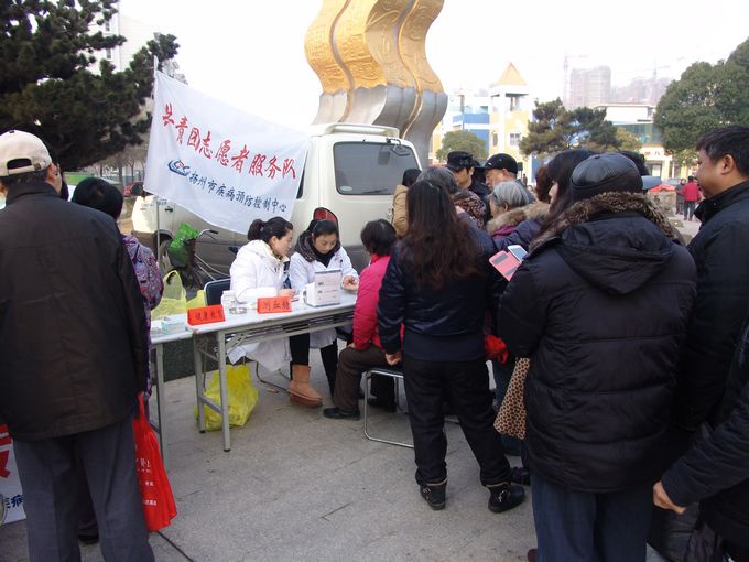 3月9日上午,市卫生局组织市疾控中心,苏北医院,扬州市第一人民医院等10家医疗卫生机构在文峰街道连运小区举办“服务基层,服务群众社区行”活动。市卫生局局长杨军,副局长尹亮亲临活动现场进行指导。