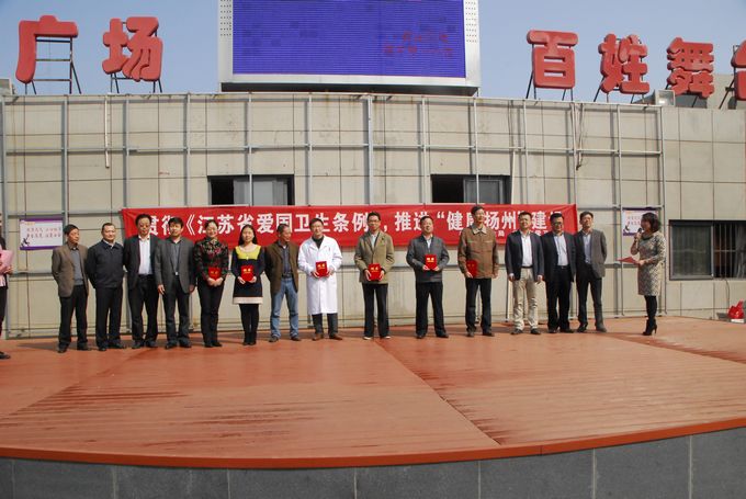 4月8日上午,市疾控中心与市直各医疗单位在邗江蒋王街道办文汇苑小区,配合市卫生局、爱卫办开展贯彻《江苏省爱国卫生条例》、推进“健康扬州”建设广场健康宣传咨询活动,650余居民参加。扬州市人民广播电台对活动进行了现场直播。