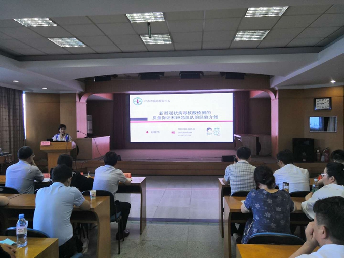 本次会议邀请了江苏省临检中心赵建华研究员就新冠病毒核酸检测质量保证及现场快速组队应急检测进行培训。赵建华研究员对新冠病毒核酸检测中的样本、试剂、质控、报告等各个环节的质量保证做了详细讲解,并且分享了核酸应急检测快速组队经验。市疾控中心相关专家还对近期国家、省下发的新冠病毒肺炎局部小规模疫情处置及核酸检测相关技术规范进行了解读。