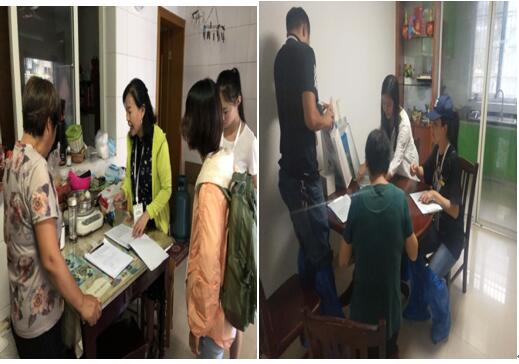 在仙女社区和龙川社区网格管理员的带领下,每个小组进入各自被调查住户中开展对家庭基本信息;家庭烹饪油、盐、糖及其他调味品称重;家庭每个成员体重、身高测量;家庭每个成员过去食物频率回顾等相关内容的调查。现场调查工作持续到21时30分左右,顺利完成了2个社区24户家庭72名家庭成员相关情况调查。