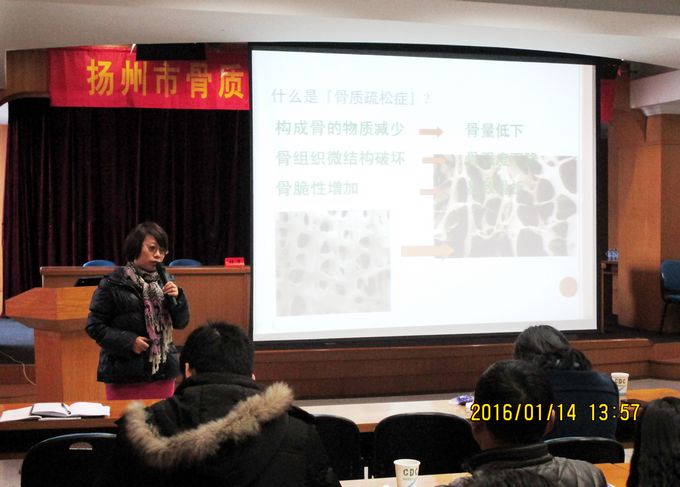 1月14日,扬州市骨质疏松防治知识与技能培训班在市疾控中心七楼会议室举办,各县(市、区)疾控中心慢病防控人员和广陵区、邗江区、江都区、开发区社区卫生服务中心医护人员200人参加了培训。省疾控中心慢非所副所长张永青、市疾控中心副主任金武出席培训班。