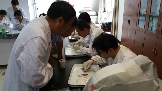 7月5日,扬州市血地办组织各县(市、区)血防业务骨干在邗江区疾控中心进行哨鼠解剖工作,共16人参加。