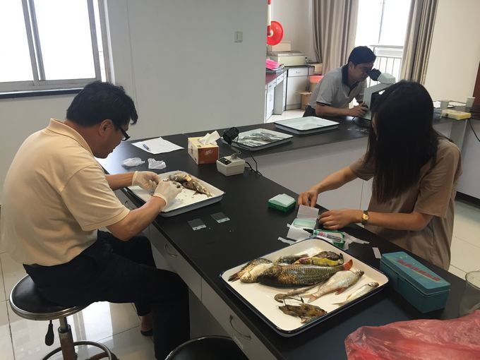 7月14日,我市在邗江区开展鲜活淡水产品寄生虫感染情况现状调查,省寄生虫防治研究所肠蠕虫室金小林主任来扬指导。