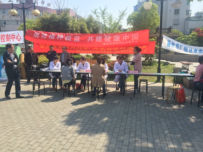 活动现场悬挂了今年“4.25全国儿童预防接种日”宣传主题横幅;展出了“4.25全国儿童预防接种日”宣传主题画、江苏省免疫规划相关政策、法规宣传戗牌等5块;发放预防接种知识相关宣传单和宣传小册子100余份;免费为40余名社区居民测量血压等。
