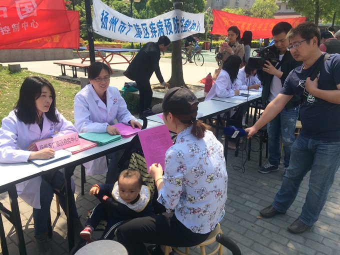 4月24日上午,市疾控中心免疫规划科、健康教育所、广陵区疾控中心、邗江区疾控中心、开发区疾控中心、邗上街道社区卫生服务中心等单位的专家和相关工作人员,走进邗江区邗上街道兰苑社区,开展“4.25全国儿童预防接种日”宣传、咨询活动。