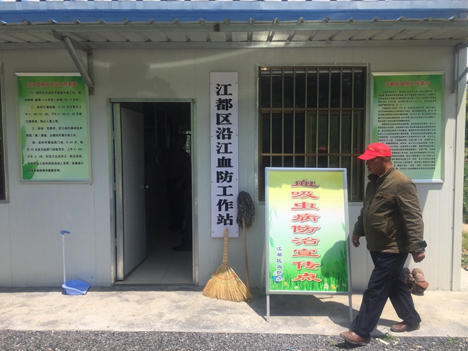 江都区江滩战线长,滩块情况复杂,去年,江都区率先探索沿江血防工作站模式,组织区血防专业队对江滩进行直接管理,优化工作流程,起到很好的效果。利用活动板房建立的工作站,花费小,作用大,可以做到现场部署指挥、培训、药品器材储存、工作人员食宿,值得推广。