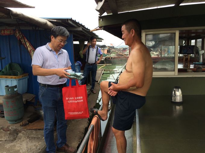 6月26-27日,省血吸虫防治研究所信息(健教)中心黄轶昕主任一行3人,对我市渔船民血防健康教育行为进行专题调研。 调研组利用2天时间,在广陵区李典镇沿江村渔船民集散地,对当地渔船民的生活状况、卫生习惯及当前血防健康教育状况进行了实地走访和调查,重点询问了渔船民在血防健康教育上的需求,此次调研共走访了30余户,100多人,调研过程中还发放了毛巾、折页等健康教育物资,受到了当地渔船民的欢迎,起到了很好的调查和宣教效果。
