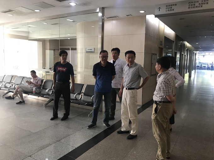 7月20日,市纪委市监委第十三派驻纪检监察组组长刘玉鑫、人社局副局长李晓钟一行4人来我中心视察65周岁以下企业退休人员体检工作。