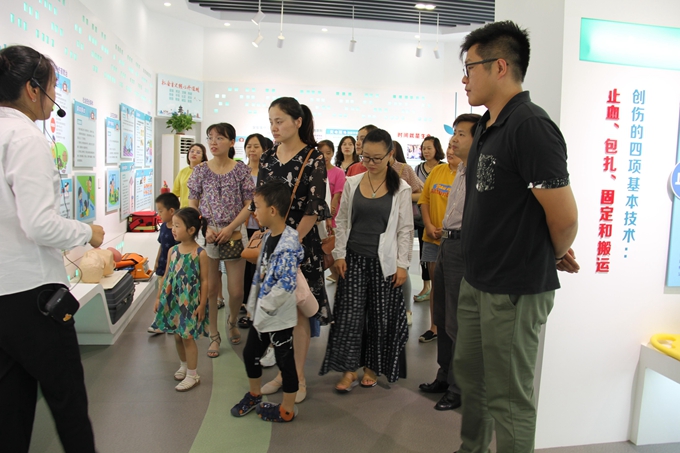 体验馆内,大家通过讲解员的生动讲解、观看急救宣传片、参观急救设备器材、模拟实际操作等,重温了急救情况下的应对措施和方法,重点了解发生意外时的早期自救,以及灾害避险过程中包括心肺复苏、止血、包扎、固定、搬运等创伤救护,AED机使用等紧急救援技术和知识。