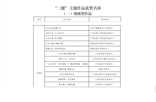 近日,“2018中国健康科普大赛”活动公布了获奖结果。市疾控中心创作的防病系列作品《孩子接种疫苗前 家长须知五事项》《预防手足口病小口诀》《致死率100%的狂犬病,你该怎么预防?》获视频类作品三等奖,《“三减三健” 迈向健康 ——健康骨骼篇、体重篇》获“三健”主题视频类作品优秀奖。