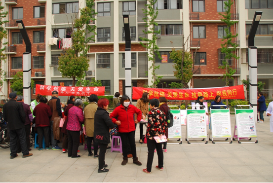 4月16日,市疾控中心组织市“12320”卫生热线、广陵区疾控中心和开发区疾控中心的10余名慢病专家走进广陵区汤汪花园社区,开展第24届全国肿瘤防治宣传周活动。
