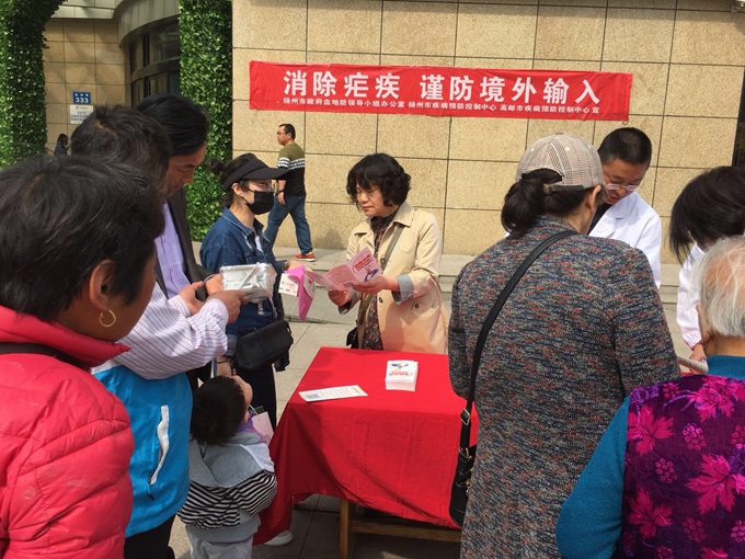 市血防办及时转发了“国家卫计委疾控局关于开展2018年全国疟疾日宣传活动的通知”,要求各地按通知要求组织开展宣传活动。市血防办、市疾控中心与高邮市疾控中心协办,于4月26日上午在人流密集的高邮世贸中心开展现场疟疾健康教育宣传,通过专家咨询、志愿者发放宣传折页和宣传品等方式方法,向当地居民宣传疟疾防治知识,受到了热烈欢迎,活动现场高潮不断。现场共出动宣传车辆2辆,设咨询台1处,横幅2条、宣传牌8块;现场发放宣传资料1000多份,水杯、修正带、宣传环保袋等实用宣传品500件,接受咨询500余人。