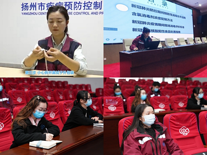 中心急性传染病防制科科长王寅新冠肺炎密接调查管理进行了全面分析,对流调溯源、现场处置等重点防控措施进行了全面讲解,对流调溯源工作指南行了全面解读。中心应急办(消媒科)主管医师田婧棽详细介绍了新冠肺炎疫情防控期间重点场所相关预防性消毒技术,列举了不同浓度含氯消毒剂的配制方法,宣贯了现场消毒评价标准和新冠病毒核酸阳性食品的处置指南。中心儿少科副科长、市三级流调队队长朱维维以视频教学方式向大家示范了新冠病毒抗原检测方法。