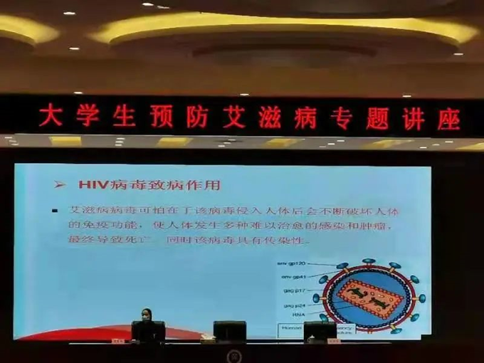 活动安排在11月25日下午,特别邀请扬州市第三人民医院孟秀凤主任作授课。她针对大学生特征,主要讲解了艾滋病的相关知识,包括艾滋病是什么、艾滋病的传播途径、艾滋病的预防方法等内容。活动中,信息工程学院预艾健行协会成员为参加活动的学生现场发放预防艾滋病宣传单和快检试纸,加深大家对艾滋病的了解和认识;信息工程学院团总支书记朱波播放快检试纸操作方法的视频,提升了大学生的实践操作技能和意识。