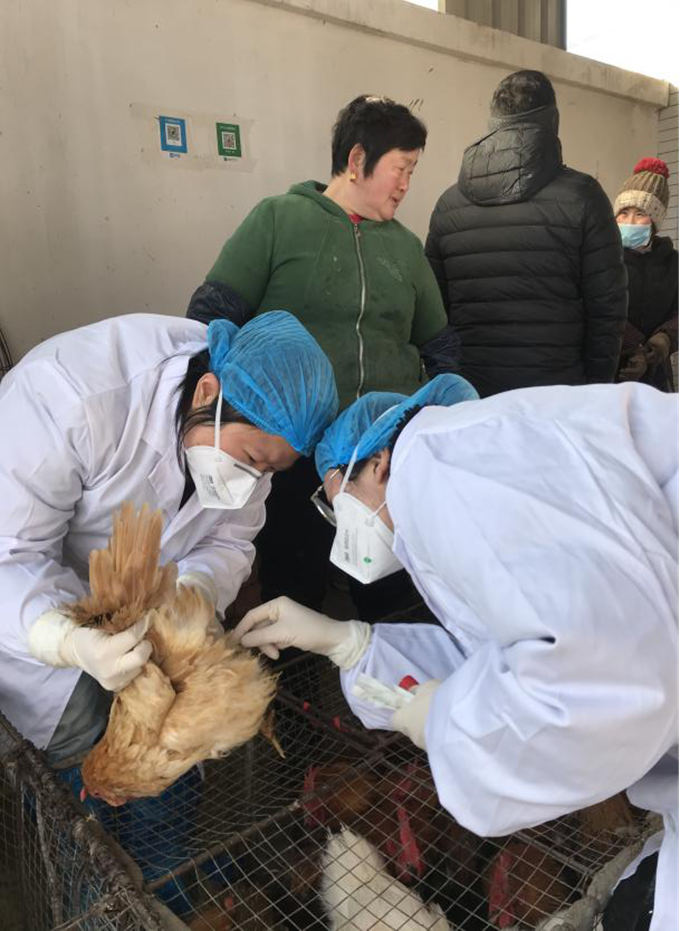 2021年2月9日上午,扬州市疾病预防控制中心急传科一行5人,前往高邮市送桥乡,开展禽流感外环境采样工作。监测了包括城乡活禽市场、家禽屠宰加工厂两种类型监测点,采集禽鸟类肛拭子24份、禽鸟类饮水4份,笼具外环境涂抹样本6份,屠宰案板等设备表面外环境样本7份,各类型样本共计41份。