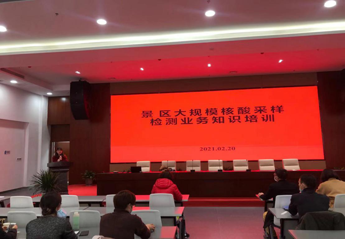 为全面做好景区新冠肺炎疫情防控常态化工作,进一步提升景区新冠肺炎核酸采样检测能力,以应对随时可能突发的疫情,2月20日下午,功能区景区分中心在市疾控中心二楼多功能厅举办了新冠病毒核酸采样检测业务知识培训会,梅岭社区、平山社区卫生服务中心等约60余名医务人员和志愿者参加了此次培训。