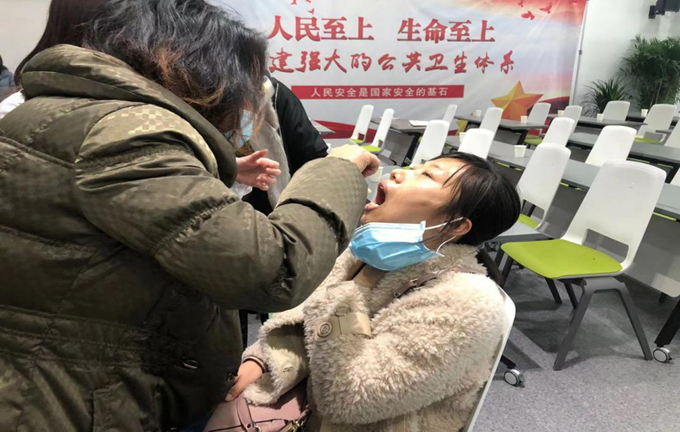 在实际操作过程中,采用一对一、边讲边示范的方式,对全体参会人员进行新冠病毒核酸采样检测采集实训,重点练习口咽拭子标本采集方法。实操后,魏医生针对大家提出的问题逐一解答。