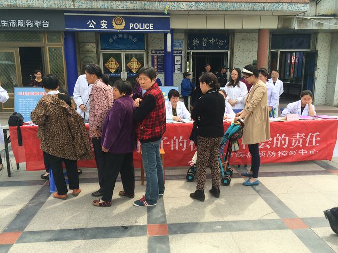 4月24日,市疾控中心免疫规划和健康教育相关业人员,走进开发区文汇街道新城花园社区,开展“4.25全国儿童预防接种日”宣传、咨询活动。今年活动的主题是:“预防接种—孩子的权利,社会的责任”活动形式有现场悬挂4.25宣传主题横幅、展出宣传展板、发放宣传单和宣传小册子,免费为社区居民测量血压等。新城花园社区及周边居民积极参与,扬州电台记者对活动进行了现场采访和报道。