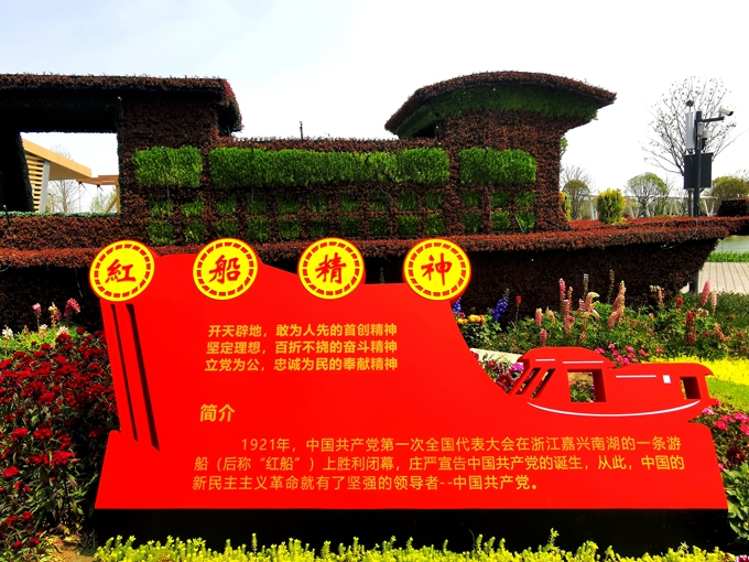 枣林湾世界园艺博览会园区内,美好的自然景观与独具匠心的人工设计融于一体,犹如园林艺术盛宴。党员们沿着步道持续行进,没有一个掉队。在短暂的休息中,依次参观调研了中国馆、国际馆等展区,一边了解“一带一路”沿线共同繁荣的先进案例,一边接受环境绿化知识科普,始终表现出积极向上的精神风貌,一路洋溢着欢声笑语,人均行程达16000步,充分体现了“坚定理想、百折不挠”的“红船”精神。