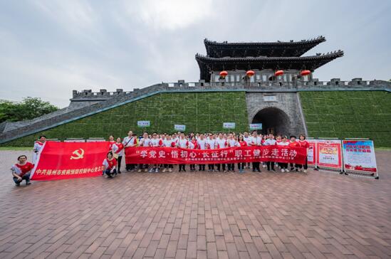 3772 为迎接建党100周年,讴歌党的丰功伟绩,进一步激发职工队伍活力,鼓励广大青年干部学党史、强体魄、聚力量,5月25日下午,由中共扬州市疾病预防控制中心总支部委员会、扬州市疾病预防控制中心工会共同举办的“学党史•悟初心•长征行”职工健步走活动在宋夹城西门拉开了序幕。来自各科室、分中心的近200名干部职工报名参加了此次活动,丰富职工文体生活的同时,号召大家学史明理,学史增信,学史崇德,学史力行。
