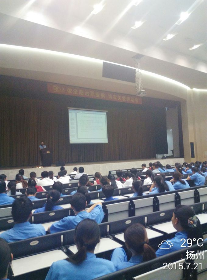 7月21日,由邗江区疾控中心举办的职业病防治讲座走进企业活动,在扬州完美化妆品有限公司培训会议室举行,完美化妆品有限公司400余名职工及邗江疾控中心职业病防治科、健教所相关人员参加活动。