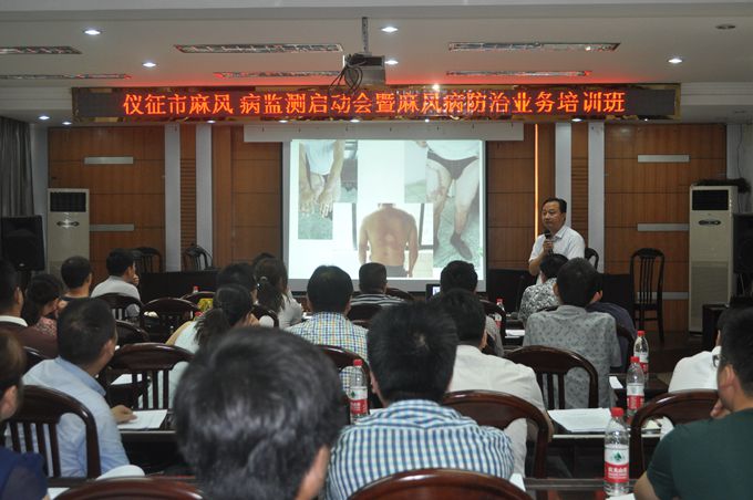 7月22日下午,仪征市疾控中心在五楼会议室召开了“仪征市2015年麻风病监测项目启动暨业务培训会议”。市直医疗单位、南京鼓楼医院集团仪征医院的皮肤科、神经科等相关医生,各镇(中心)卫生院防保组长、皮肤科医生、村医生代表等共计50余人参加了会议。会议由市卫计委疾控科科长张文彪主持。