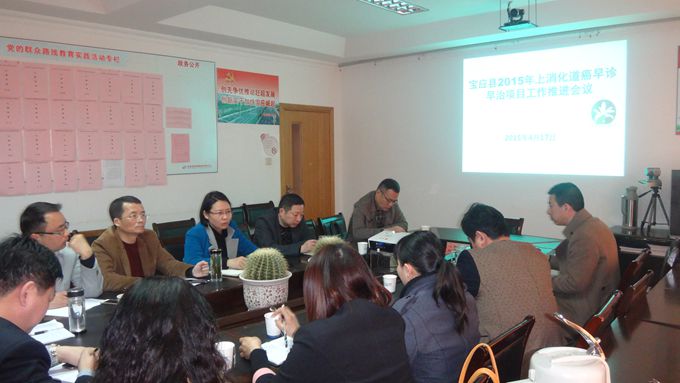 4月17日上午,宝应县疾控中心在二楼会议室召开宝应县2015年上消化道癌早诊早治项目工作推进会议。疾控中心、安宜镇社区服务中心、氾水镇中心卫生院等项目相关人员共计14人参加了本次会议。县卫生局副局长鲁加香、卫生应急办主任陈平出席会议。