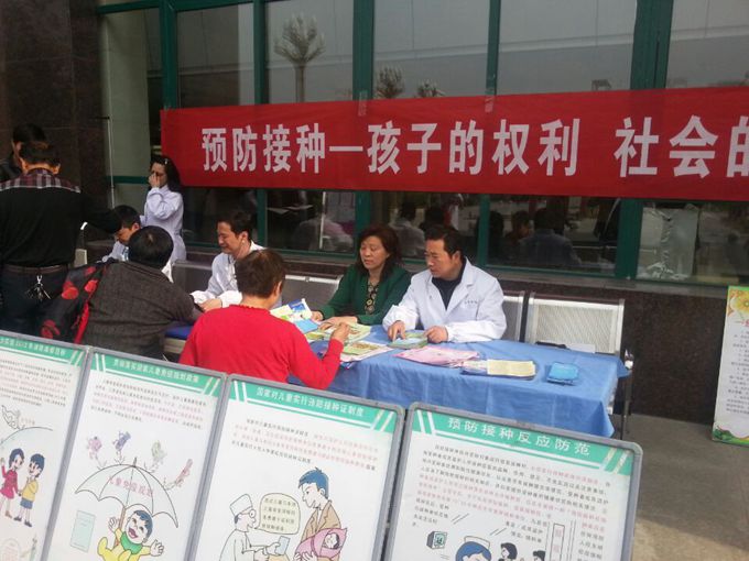 各地在活动现场,通过悬挂“预防接种——孩子的权利,社会的责任”主题横幅、摆放宣传戗牌、发放预防接种知识宣传折页和宣传单,吸引家长前来咨询;同时卫生专业人员对群众提出的问题进行详细的解答,并向群众面对面宣传扩大国家免疫规划的政策、疫苗相关疾病的预防及预防接种可能产生的异常反应相关知识,使广大儿童家长认识到及时为孩子进行预防接种不仅是儿童的权利,社会的责任,更是每个家长责无旁贷的责任。