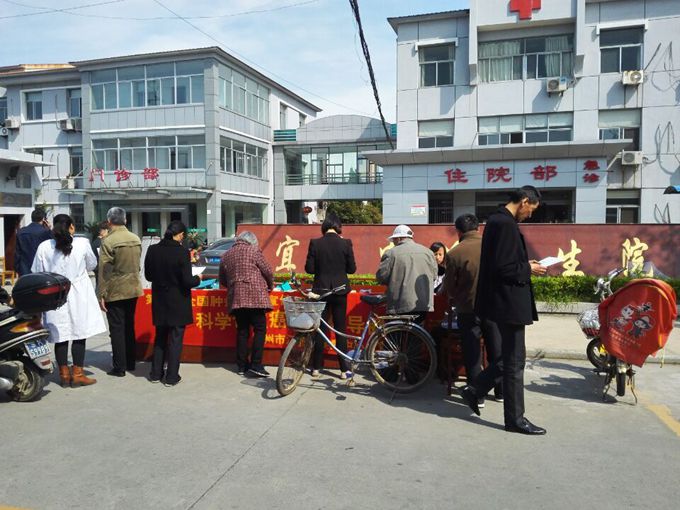 活动现场设咨询台进行健康生活方式指导并发放4种类型的肿瘤防治宣传单和其他宣传手册。为提高居民的参与度,宜陵镇中心卫生院还在活动现场安排人员免费测量高血压。在两个多小时的活动中,共为130余人免费测量了血压,发放各类宣传资料和物品610多份,受到社区居民的一致好评。